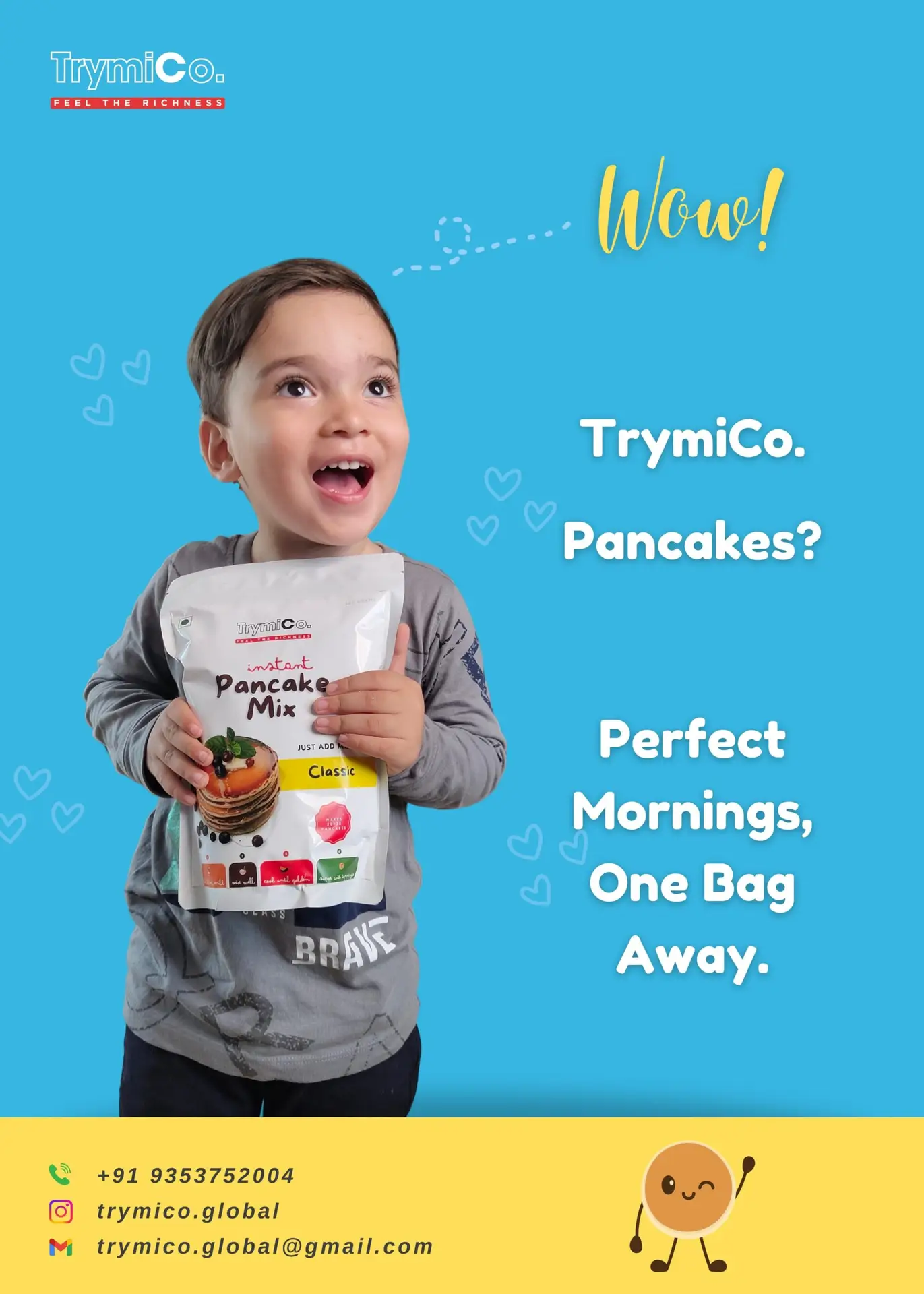 Just mix with water or milk, cook, and savor the goodness! Perfect for families, brunches, or anytime you crave a perfect stack. Quick, easy, and irresistibly tasty – Trymico makes pancake mornings better.